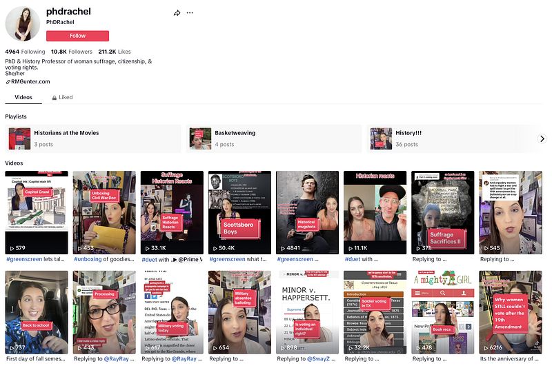 Below are a few of Dr. Gunter's History Tik Tok. To view them all, follow her on Tik Tok @PhDRachel