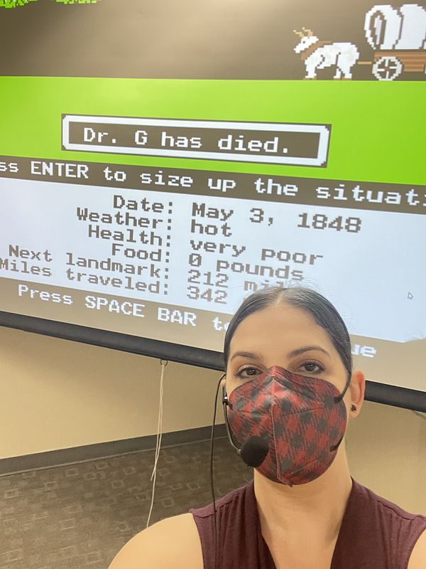 I set up the assignment using the New Quiz tool in Canvas, the LMS my institution uses. The students have to upload a screenshot of how far they made it or of their last headstone screen including the URL. Then they have two paragraph response questions corresponding to the prompts above. I always tell students that I want their writing to sound like them—not like a textbook or AI. This is supposed to be a fun alternative to a traditional writing assignment, so have some fun with it. Come up with a backstory for your team members. Get incredulous when a thief inevitably steals all but one of your oxen. One student named all of her team members after the founding fathers we'd covered in class, and then said she couldn't blame Jefferson for having so many broken bones on the trail as she suspected Hamilton had something to do with it. Another used the Teenage Mutant Ninja Turtles and made jokes about turtle soup a la the Donner Party. Yet another used the Power Rangers and had separate epitaphs for each based on their color and powers.